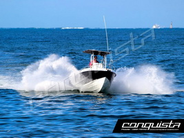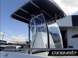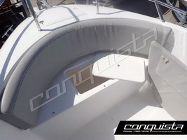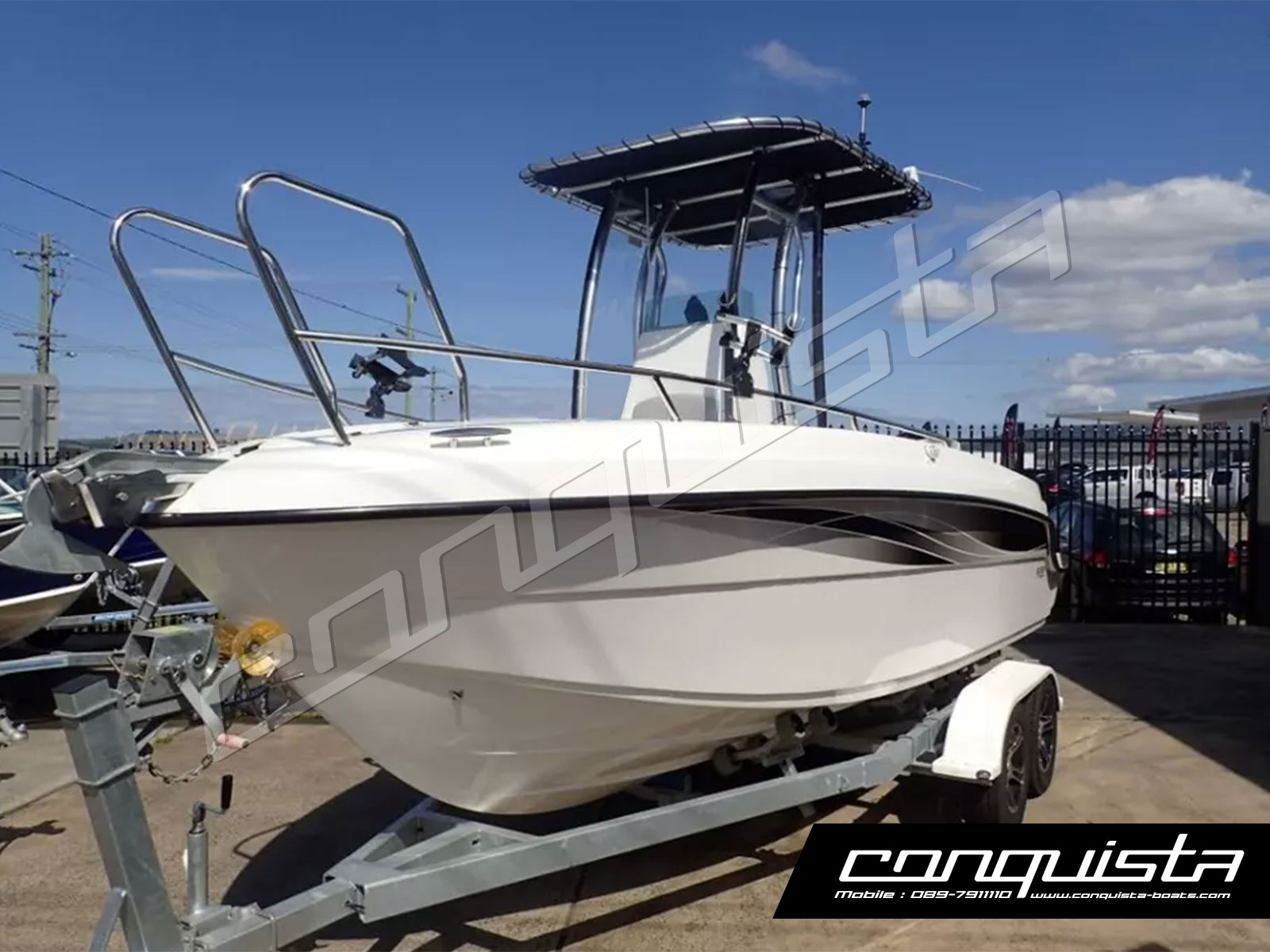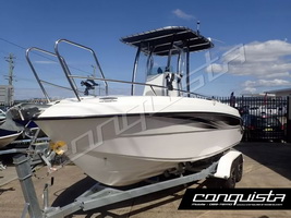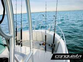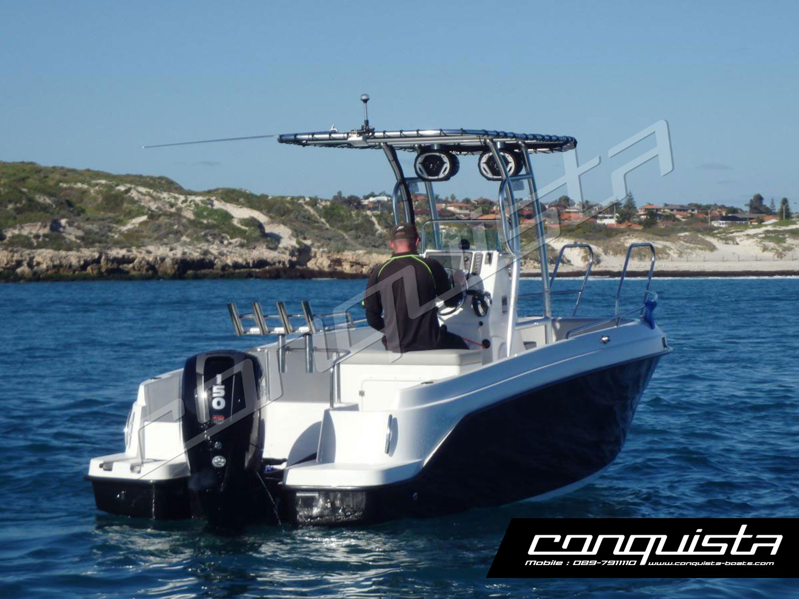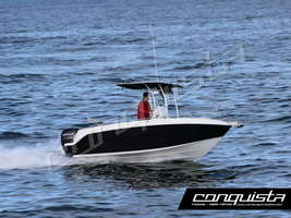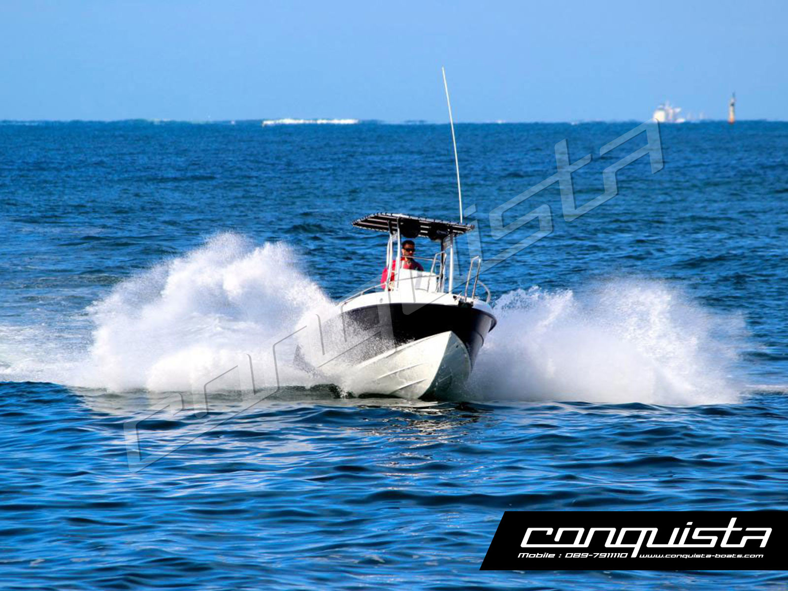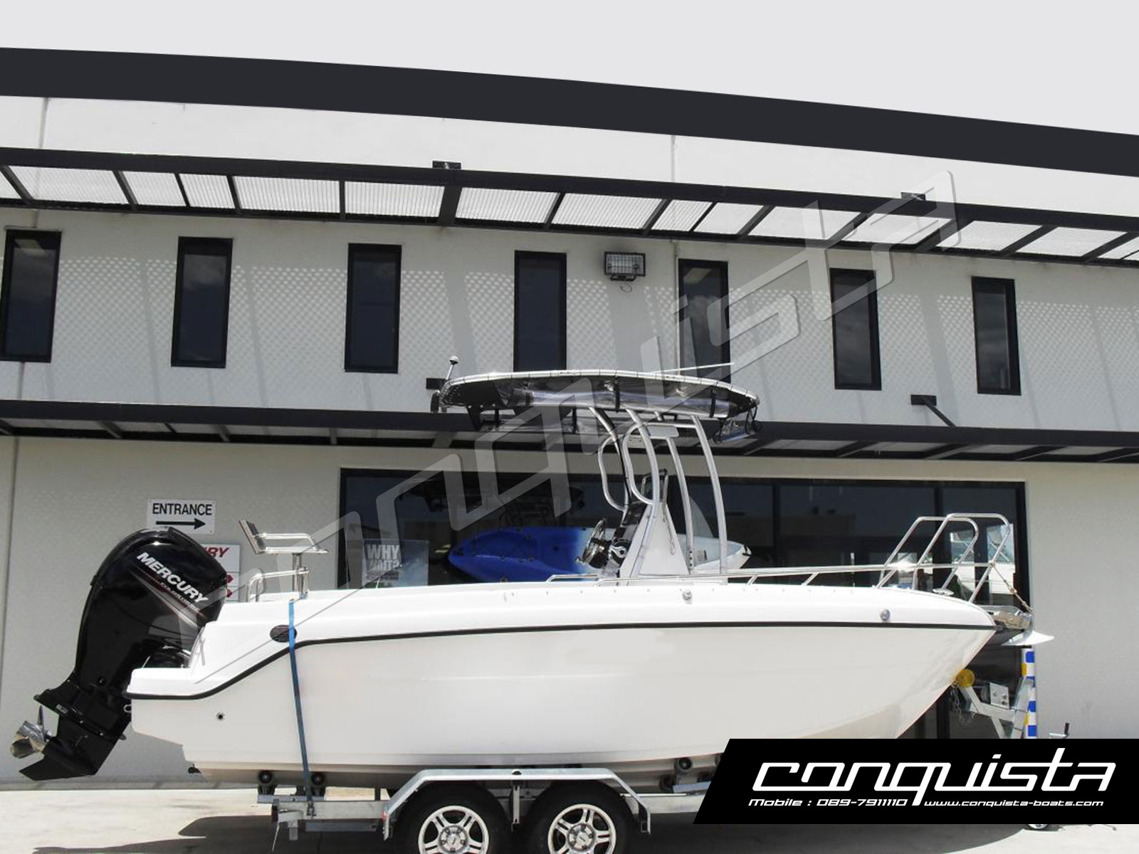 The CCC600 features an infusion molded, ultra-stiff and light-weight hull, fully functional 360 degree fishing action, a self-draining deck and a uniquely design aluminum T-Top with plenty of space for all your fishing gear. The floor-integrated storage/kill tank provides plenty of volume for your supplies or the catch of the day. The dashboard features plenty of space for additional instruments and a fish finder or MFD.